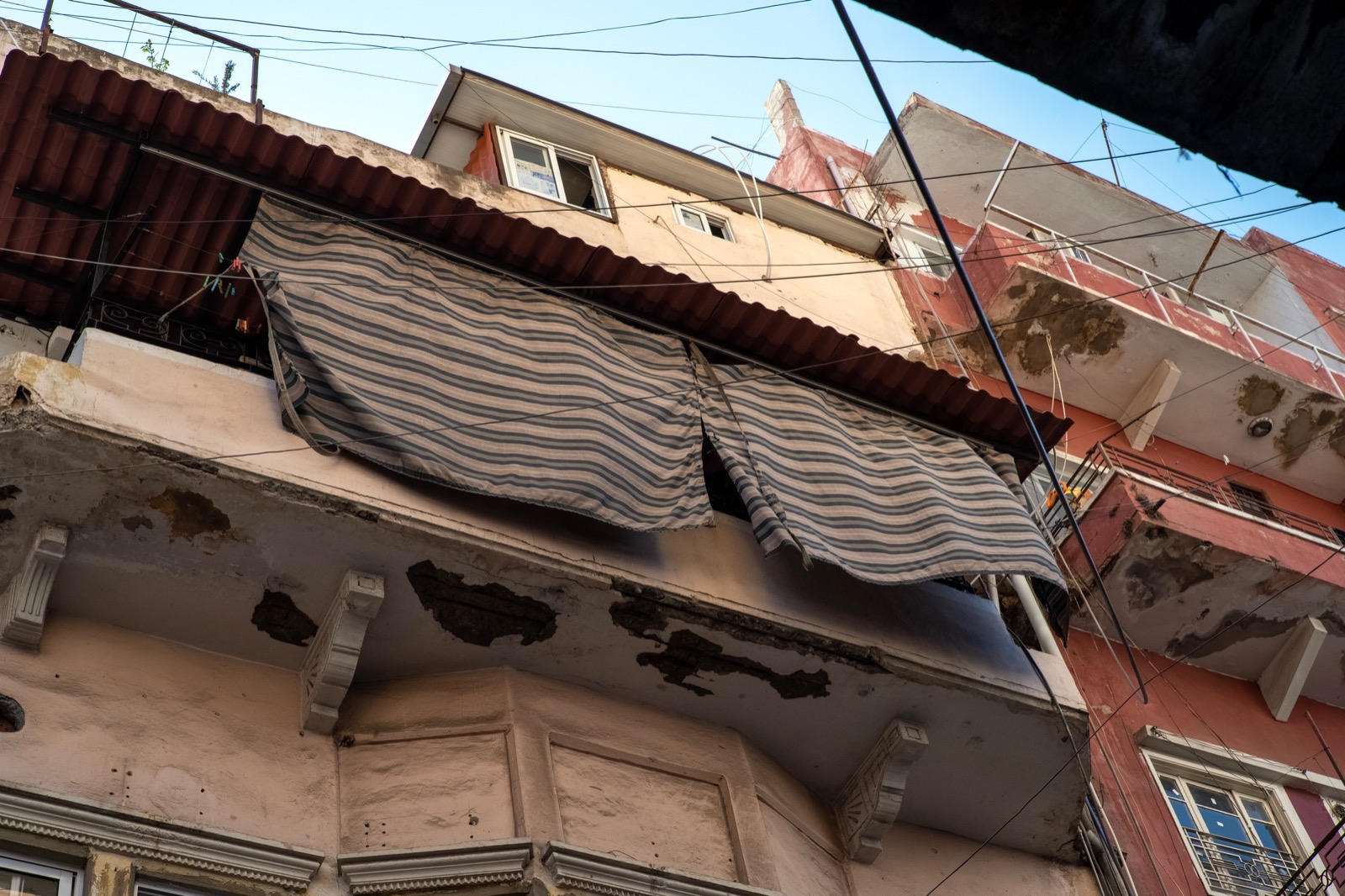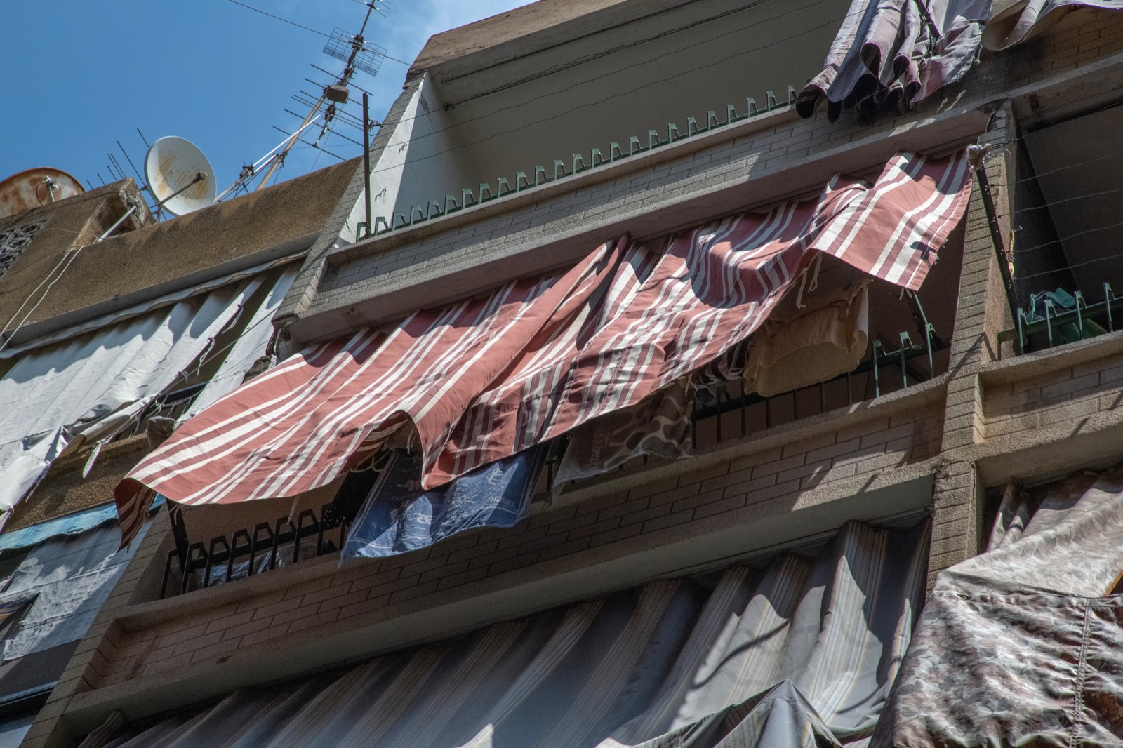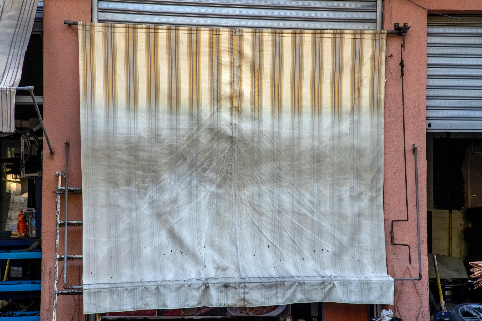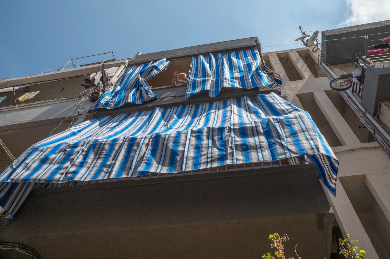In two weeks 42 balcony curtains were renewed for 13 houses. I kept the used ones which I will work with for the upcoming exhibition at Galerie Tanit in November.